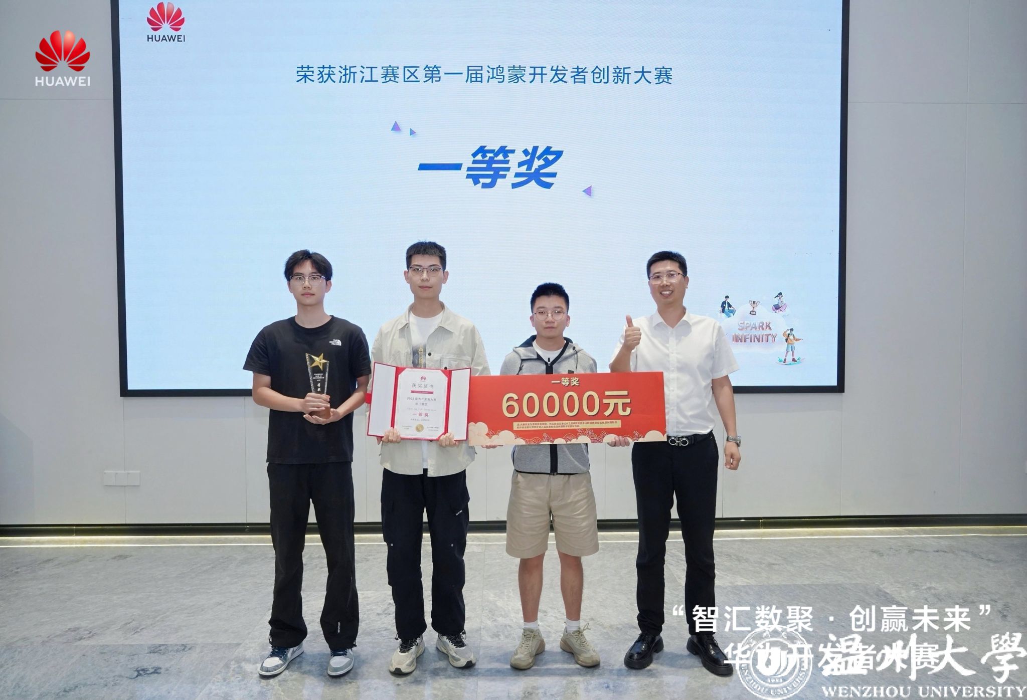 2025年10月20日,由温州市经信局、龙湾区人民政府指导,华为技术有限公司、华为(浙南)开发者创新中心主办的“智汇数聚・创赢未来”浙江第一届鸿蒙开发者创新大赛决赛暨颁奖仪式圆满落幕。作为华为ICT领域面向全球的高端赛事浙江赛区首秀,本次大赛吸引全国20多个省市自治区、50多个城市的500余家企业与高校团队同台竞技,历经近两个月线上征集、多轮评审的严苛选拔,最终温州大学计算机与人工智能学院学生团队凭借硬核技术实力斩获唯一一等奖(总冠军),创下学校在国内开源与信创顶级赛事中的历史最佳成绩。