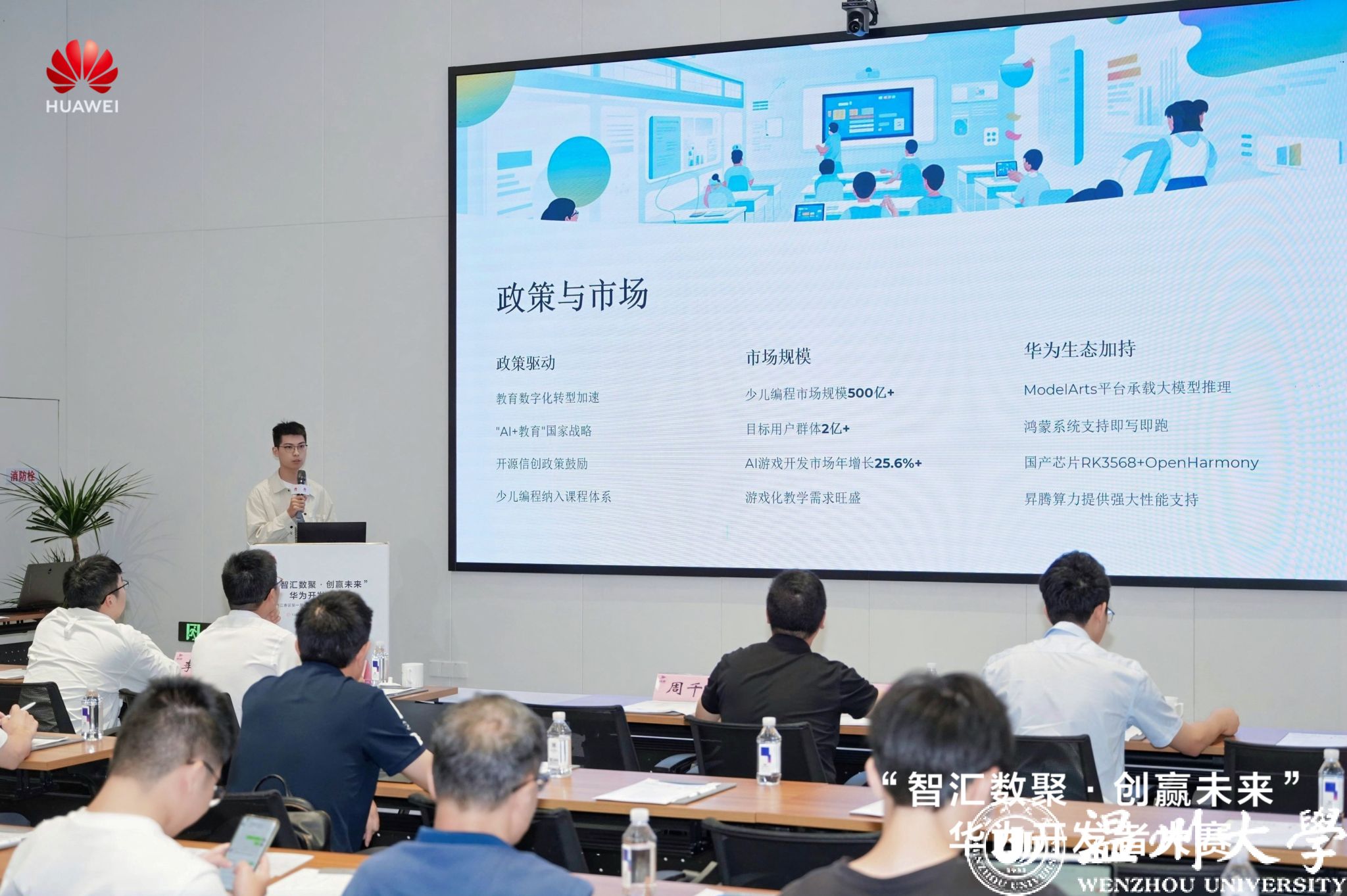 本次获奖团队由温州大学开放原子开源社团核心成员叶哲鸣、徐振翔、杨江城联合开源领域资深开发者组成,项目《鸿蒙人工智能+基于Dora SSR的全链路鸿蒙生态AI游戏教育解决方案》在学院黄长城教授技术指导下,依托温州市龙湾区开源信创技术研究院的科研平台,联合浙江卡赢科技、开放原子基金会共同研发完成。这一成果既是学校“产学研用”协同育人模式的生动实践,更彰显了计算机与人工智能学院在创新人才培养中的扎实成效——学院始终紧扣“315”科技创新体系需求,通过校企共建研究院、引入产业真实课题,让学生在开源技术攻关中锤炼实战能力。