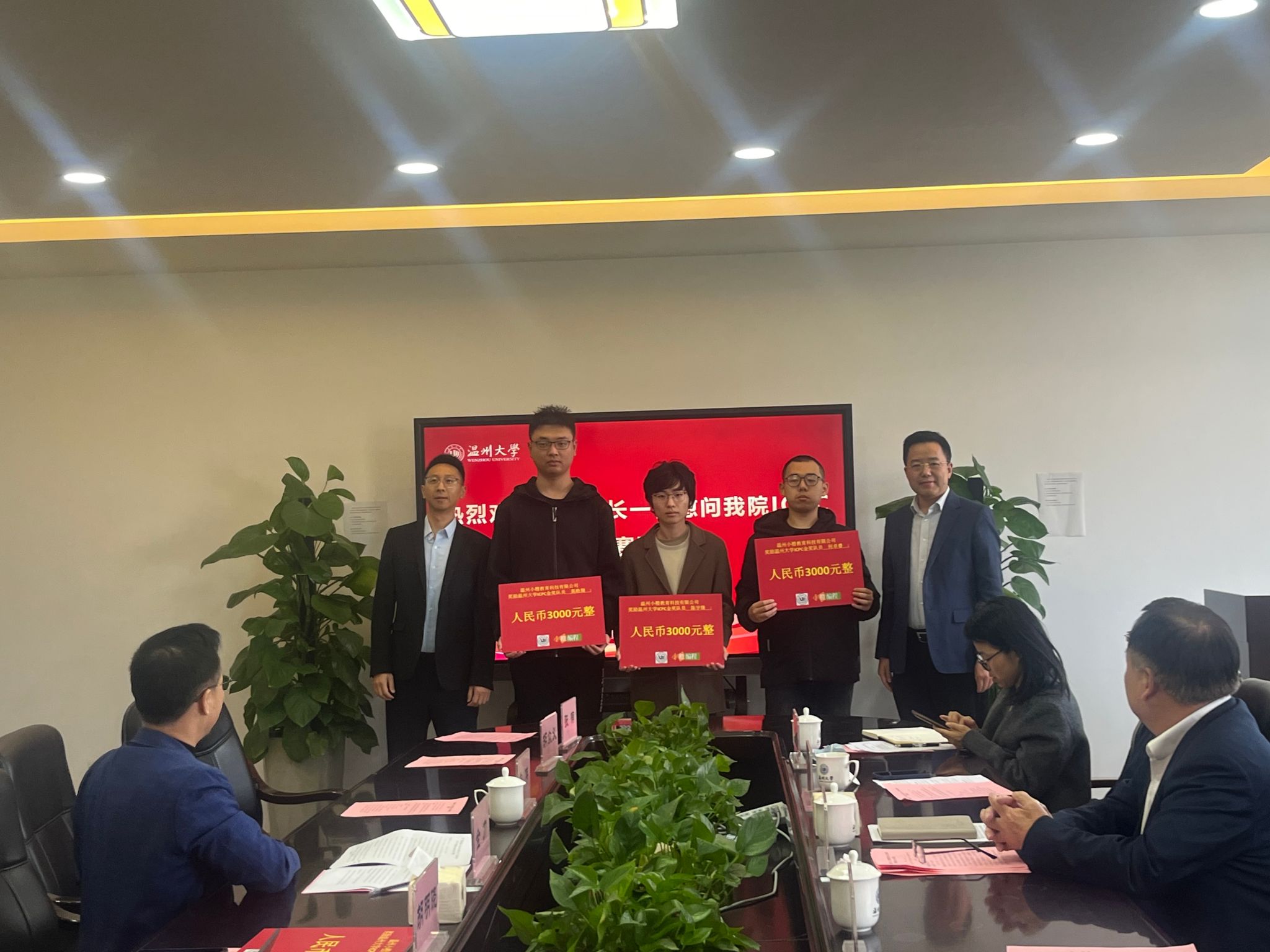 2025年12月3日下午,温州大学赵敏校长、王尧骏副校长及相关部门负责人慰问在第50届ICPC国际大学生程序设计竞赛亚洲区域赛(武汉)中荣获金奖的师生团队,并参加座谈会。会议于学院5B318会议室举行,由学院党委书记全力主持。温州小橙教育科技有限公司总经理单伟作为企业代表受邀出席。