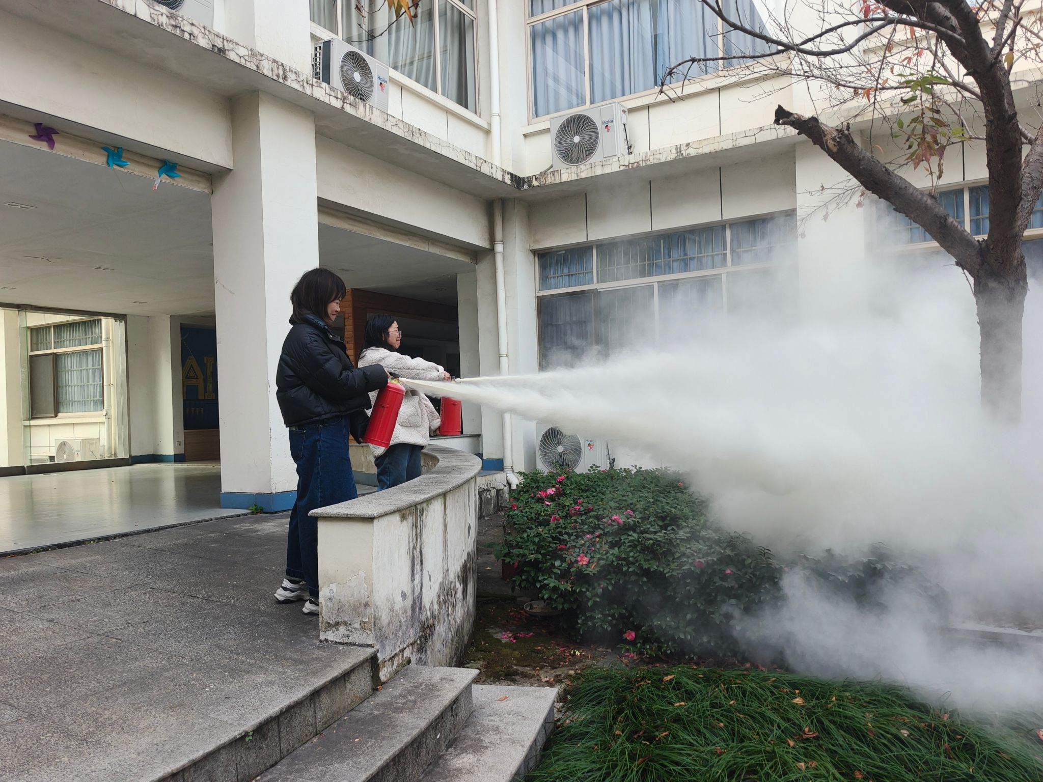 会后,学院组织全体教职工开展了校园安全综合演练。在消防安全演练环节,教职工认真学习了灭火器使用方法并分批进行实操。随后,现场开展了反恐防暴基础技能讲解与协同处置模拟,提升应对突发事件的能力。本次演练融合防火防暴双重主题,通过理论结合实践的方式,切实增强了教职工的安全意识和应急处置水平,为平安校园建设奠定了扎实基础。