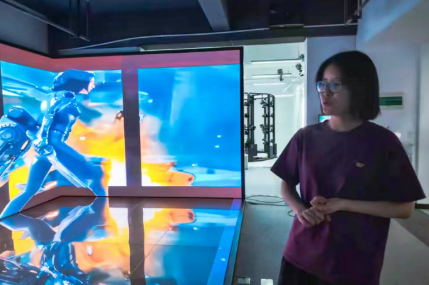 在研究院内,一系列前沿科技成果让实践队员们沉浸式感受科技力量。在人工智能对弈区,指导老师介绍,这里的五子棋机器人实力强劲,即便顶级选手也难取胜,其原理与阿尔法狗相近,存储海量棋局,相较人类最多记忆20种棋路的极限,能掌握成百上千种棋路,象棋对弈时更可分析胜率并语音解读棋路,让队员们在对弈中直观感受AI强大的决策能力。VR沉浸式体验房则通过多感官模拟技术打造逼真虚拟环境,队员们触摸墙面的生肖古文字时,文字即刻转化为活灵活现的生肖形象,瞬间开启奇幻的虚拟探索之旅。此外,研究院借助3D建模技术还原的宋代温州虚拟场景,古色古香的建筑、车水马龙的街道与身着传统服饰的人物,让千年温州风貌清晰重现;3D裸眼大屏播放的元宇宙动画更带来震撼视觉体验,虚拟人物仿佛突破屏幕边界,切换视角后队员们仿佛置身古船之上,随水波荡漾穿梭古温州街巷,真切感受船身晃动的惬意。