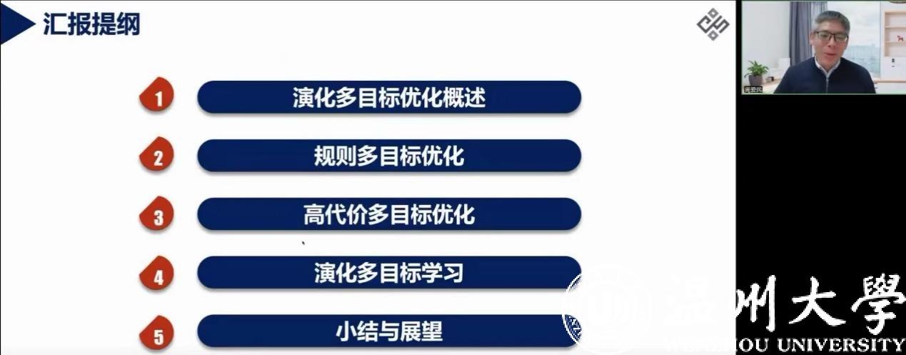 2022年12月15日,华东师范大学计算机科学与技术学院周爱民教授受我院邀请作题为“演化多目标优化与学习”的学术沙龙讲座。讲座由副院长陈慧灵主持,60余位相关领域人员参会。因疫情防控需要,本次讲座以线上形式进行。