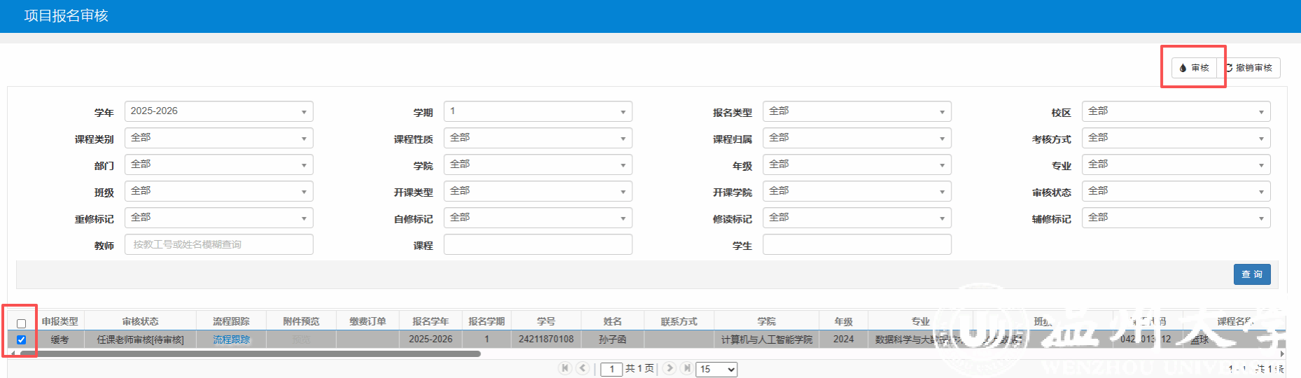 (如果专业课学生学院和开课学院一致,必须审两次,一次作为学生学院审,一次作为开课学院审)